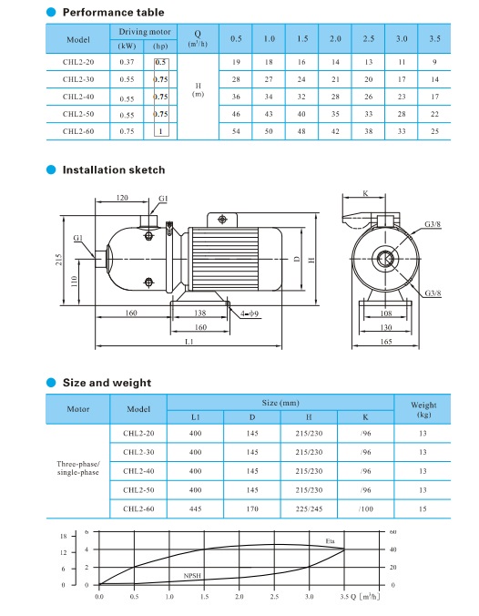 CNP CHL CHLK(空调泵)多级泵由不锈钢304制造,是许多工业和液体传输过程中传输清洁的非研磨性液体的理想选择。泵也可由316不锈钢结构制造,具有更强的耐腐蚀性。